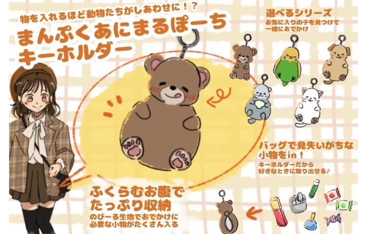 『まんぷくあにまるぽーちキーホルダー』は、「見失いがちな小物の収納をサポート」を訴求点とし、小物収納という実用性を持ちながら、伸びる生地の使用により動物のお腹が膨らむというユニークなデザインが特徴的で、まさに大学生世代の感性にぴったり合ったアイデアでした。